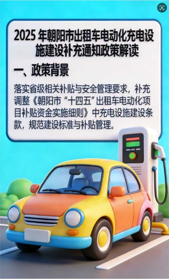 2025年朝阳市出租车电动化 充电设施建设补充通知政策解读